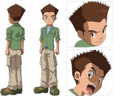Garoto da 7ª Série, calculista, derruba seus amigos com frieza. Seu parceiro é Greymon, seu Dublador é Kusao Takeshi.