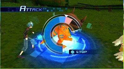 Os inimigos também têm ataques especiais, e segue o mesmo exemplo do seu Digimon. Pare-o na parte vermelha do medidor, e você evitará a maior parte do dano.